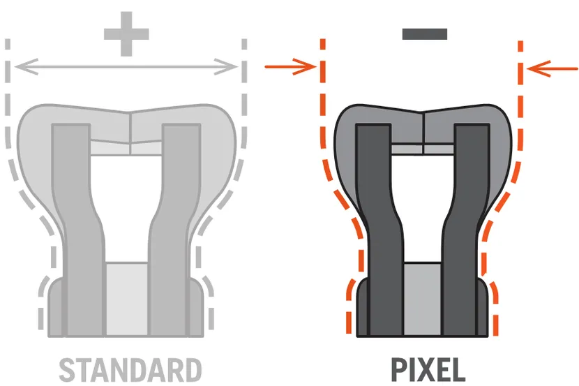 Șinele de ghidaj și lanțurile pixel, cu șasiu îngust, asigură o tăiere îngustă, greutate redusă și eficiență sporită a tăierii.
